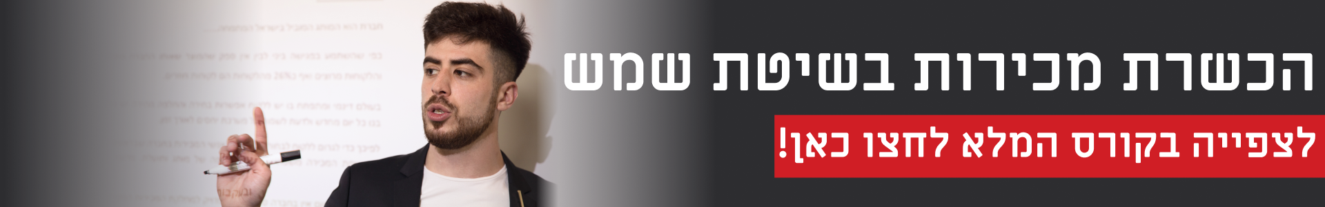 קורס מקיף שילמד אתכם להיות אנשי מכירות מפולפלים וחדים. אביב שמש בנה עבורכם קורס הכשרה לפי השיטה שגרמה לו להצליח להגדיל מחזורי מכירות לעשרות בעלי עסקים בארץ! הצטרפו אל ההצלחה!