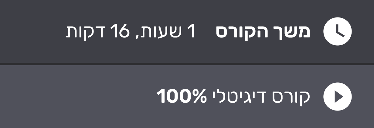 רכשו את הקורס כעת, ותקבלו הרשאה לצפייה למשך חצי שנה.
